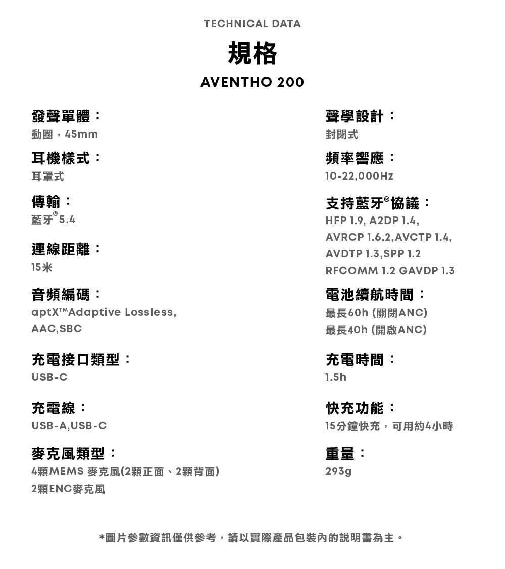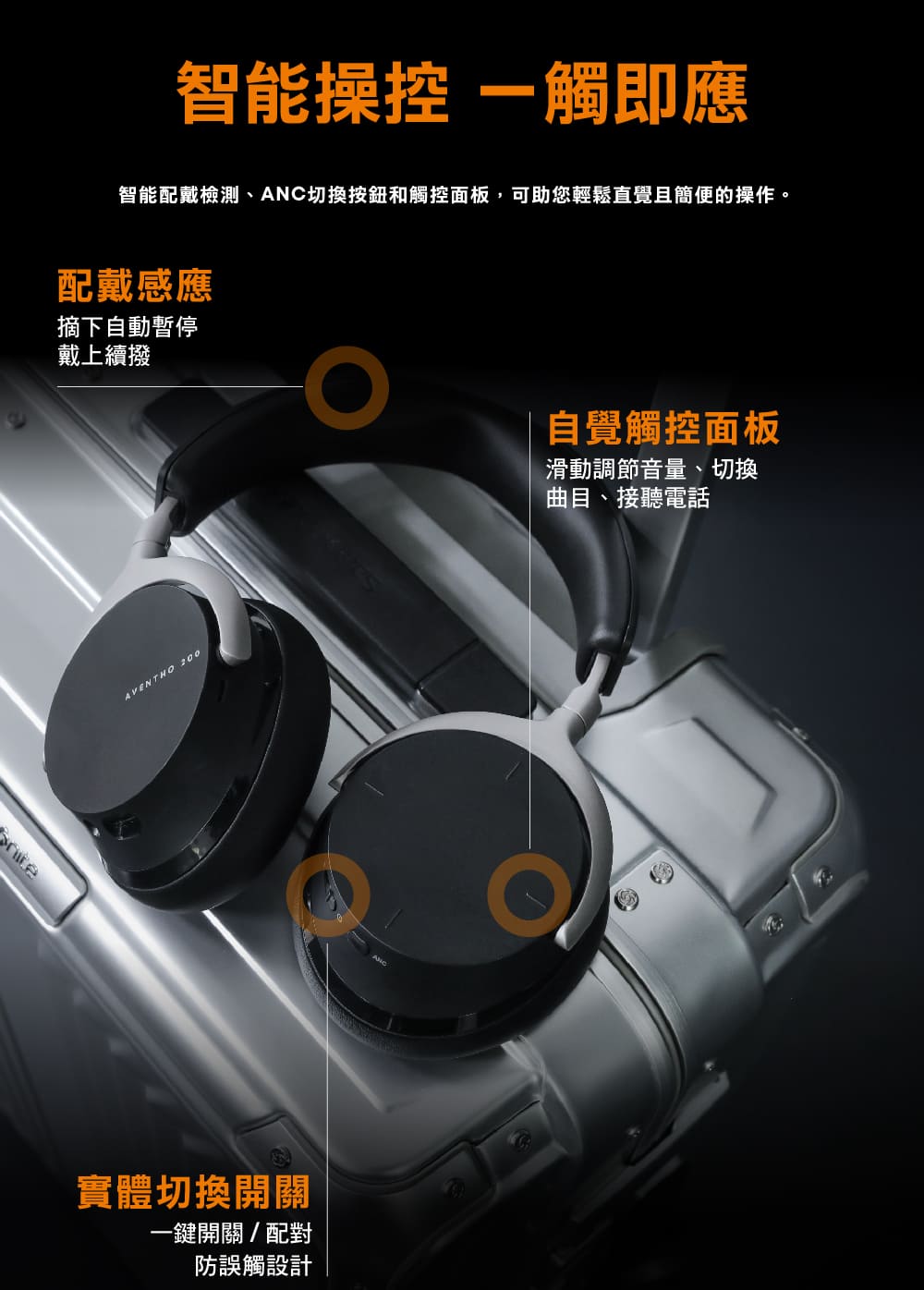 AVENTHO 200 高音質藍牙耳罩式耳機 灰